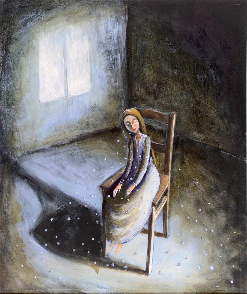 A leány születése óta sötétben élt, ám mégis olyan fényességet árasztott maga körül, hogy aki látta, megcsodálta. Kislány volt még, amikor az édesanyja észrevette, hogy a parányi igazgyöngyök fényleni kezdenek, és ahogy a kislány nő, egyre erősebb lesz a fényük. A kislány persze mit sem sejtett ebből, hisz azt sem tudta, mi az, hogy igazgyöngy, azt pedig még kevésbé, hogy mi az a fény.
