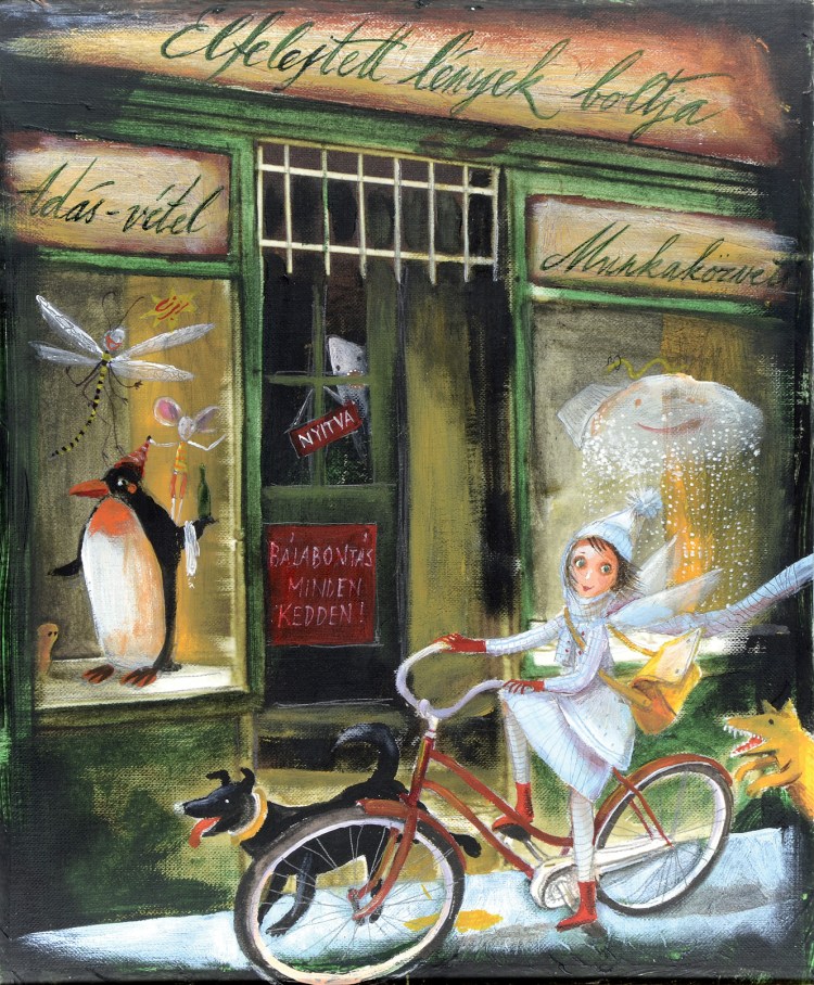 Ariella megborzongott, aztán felnézett a kirakat fölött lógó fatáblára. Elfelejtett lények boltja. Adás-vétel. Munkaközvetítés. Ez volt a cégérre festve szép kacskaringós, fenyőzöld betűkkel. Ariellának igazán nem kellett a szomszédban kuncsorognia egy kis kíváncsiságért. Fogta magát, és átsuhant a bejárati ajtón.