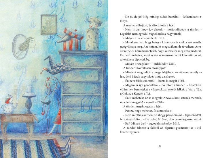 Vajon hol található a boldogság kék madara? Csupa titok Tiltil és Mitil kereső kalandja, ismeretlen világokban barátok és árulások kísérik útjukat – mindez a mesék bölcsességével lezárva.