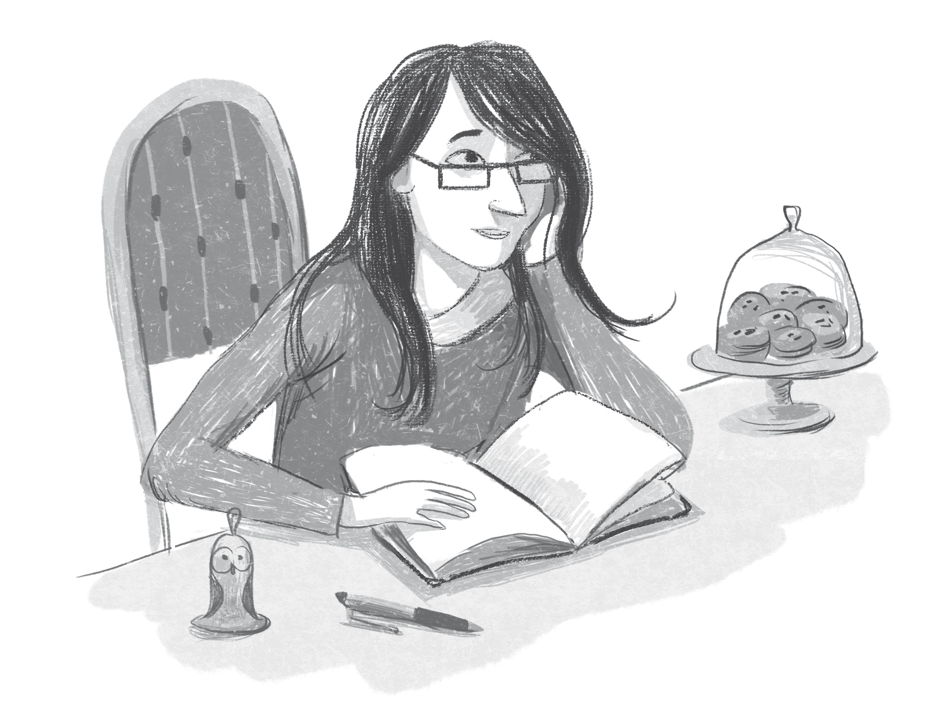 Puha, bordó kendőjébe burkolózott, és felnézett. A hó egyre nagyobb vattacukorpamacsokban hullott. Kinyújtotta a nyelvét, hogy elkapdossa a pelyheket, és fura módon tényleg vaníliás illatot érzett. Körülnézett, hát persze, egy kávézó előtt áll. Nem is kávézó, hiszen a kirakatban könyvekből, sok-sok könyvből épült karácsonyfa tornyosul! Macskabagoly – olvasta le Mira a kovácsoltvas bagoly tartotta cégtáblát, és a név láttán elmosolyodott magában. A madártani meghatározás helyett szárnyas, bagolytestű, macskafejű állat jelent meg a képzeletében, aki hízelegve közeledik a szegény, erdei vándorokhoz, hogy a meséivel elandalítsa őket, míg egészen elfelejtik, kik is valójában.