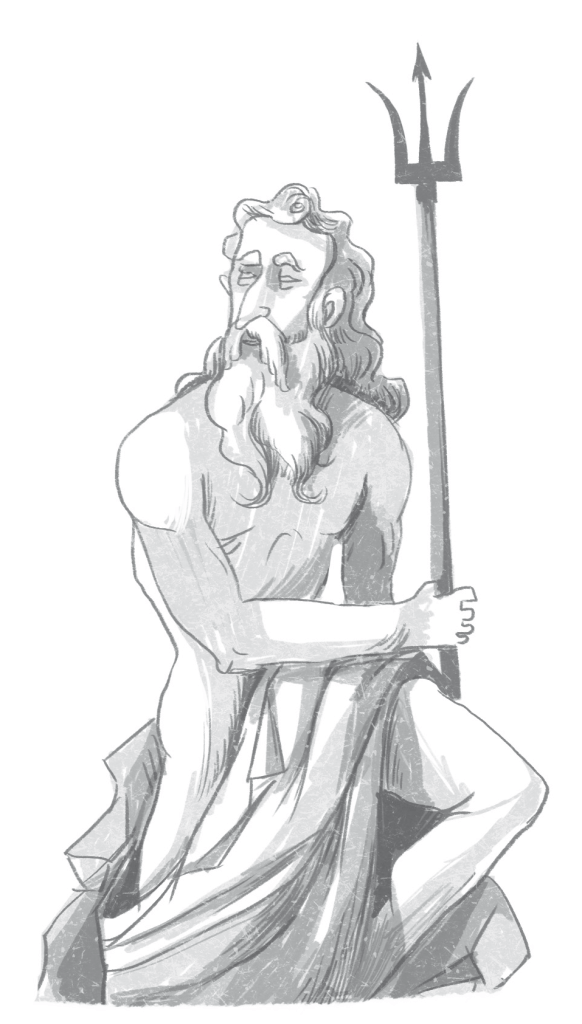 A lány felfigyelt a fura csöndre, majd mintha vízcsobogást hallott volna. Az orrát hirtelen ciprusok és narancsvirágok édes illata csapta meg. Felnézett, és egy pillanatra maga is szoborrá dermedt, mert a szökőkút kőperemén ülve a villás Neptunnal nézett farkasszemet.